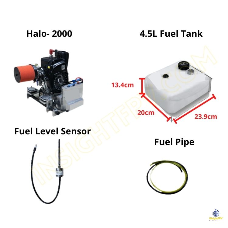 As an onboard 2000w generator, Halo-2000 offers plenty of power to motors to ensure a long endurance. The generator also features low noise, the noise level at a distance of 10 meters from the generator is 80dB, 30m–70dB. Maintenance is necessary for Halo-2000 to keep its high performance. The maintenance cycle is 50hours. It is recommended to change the fuel filter every 50 hours.