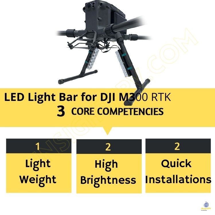 The LED light bar featuring light weight, small size and quick-mount design is developed based on DJI OSDK, which is compatible with M300 RTK. Made of aviation aluminum and POM steel, the led light featuring high strength and good toughness.The high quality LED beads ensure a high luminous efficiency and long service life. The LED light is powered through the OSDK port, plug and play, simple and convenient. It has five flashing modes which can be switched through the switching button on the light. The LED light can not only make flight safer and more reliable at night, but also play the role of identification, which can be widely used in emergency rescue, search, firefighting and police affairs.