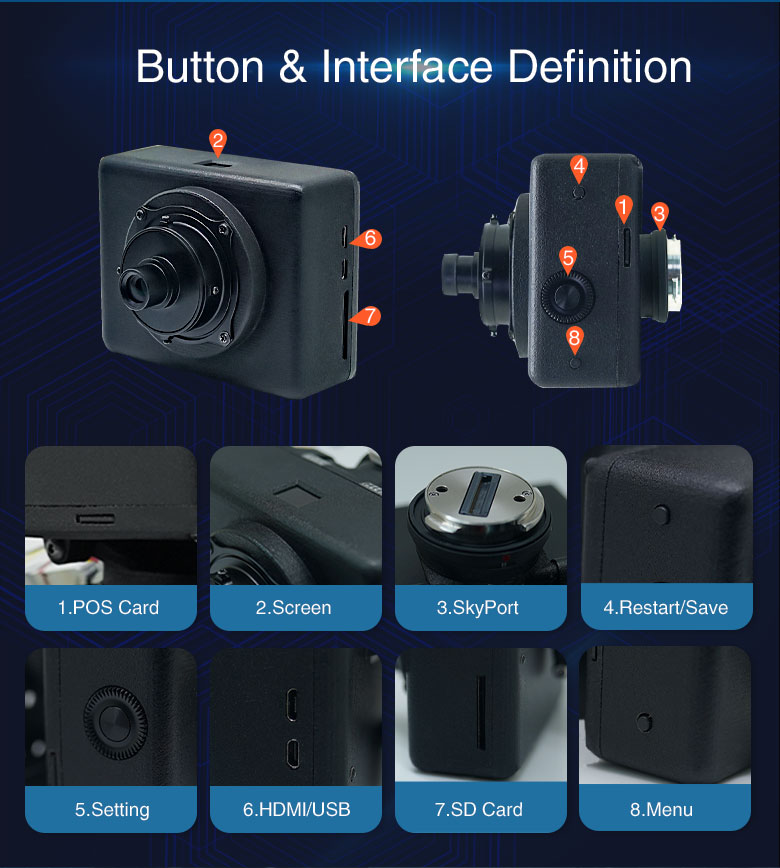 2. The camera parameter can be adjusted by USB or button with the help of the micro screen.