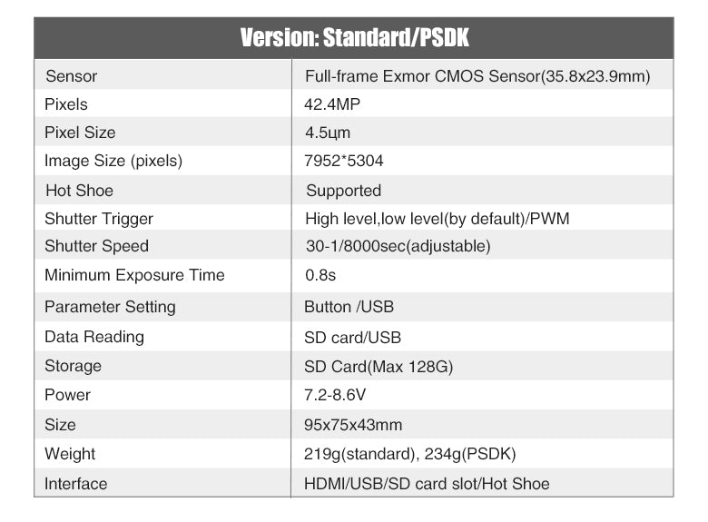 6. It is fully compatible with dji drones via SkyPort which is integrated with power, RTK signal, data and image transmission. The PSDK version weighs 234g with 35mm lens.