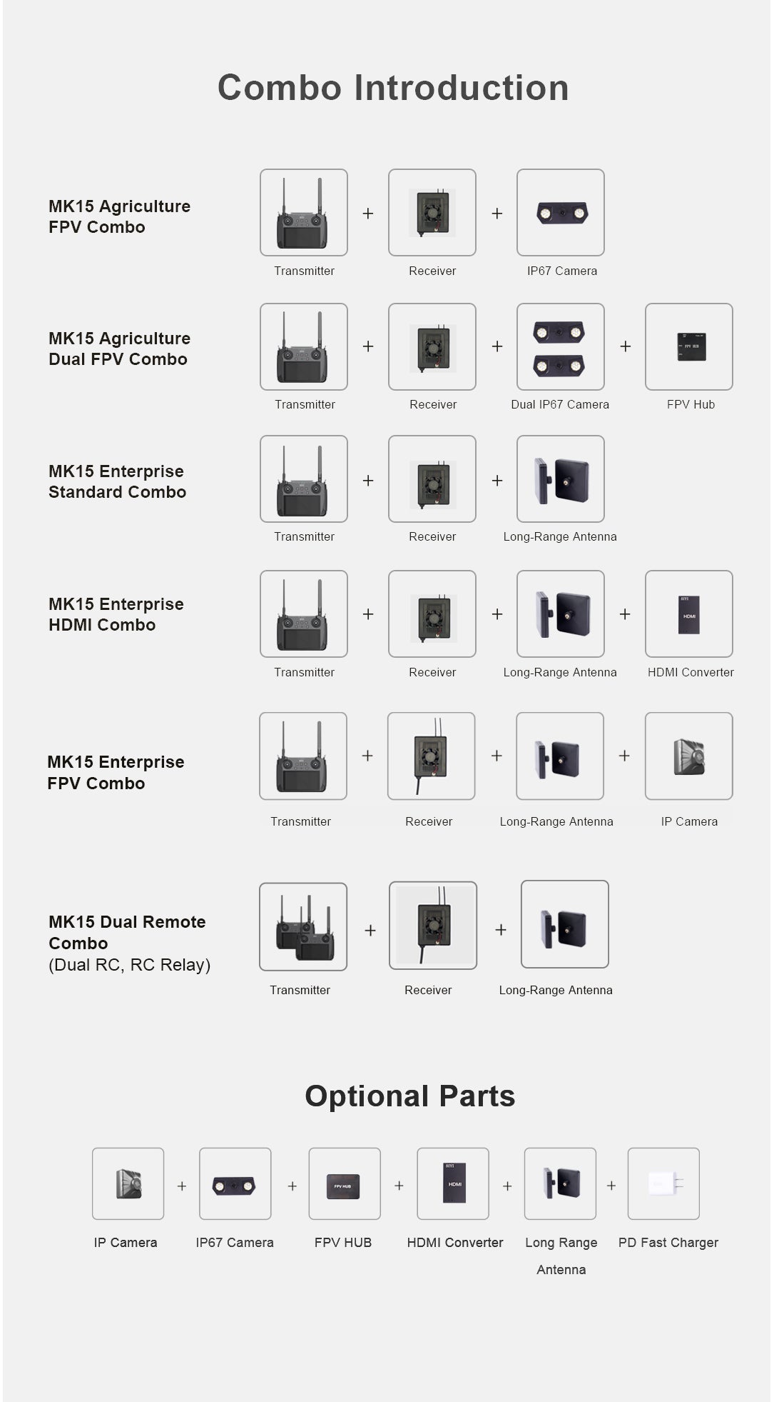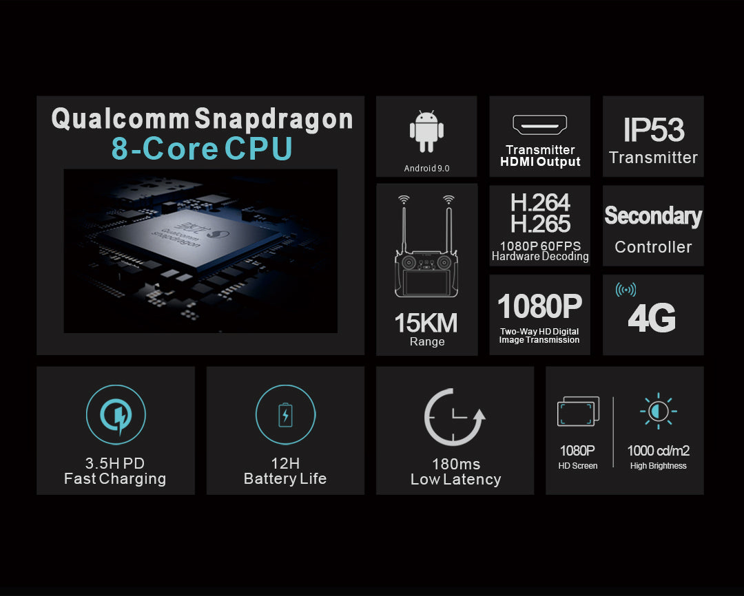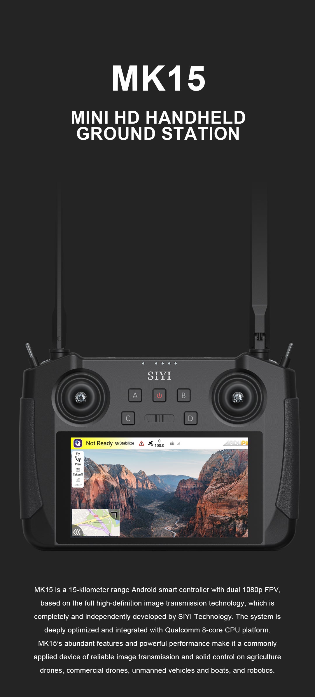 based on the full high-definition image transmission technology,which is completely and independently developed by SIYI Technology. The system is deeply optimized and integrated with Qualcomm 8-core CPU platform. MK15's abundant features and powerful performance make it a commonly