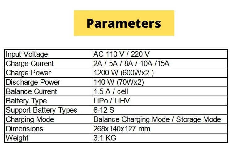 1. Support charging 2 pcs of 6-12S LiPo/LiHV batteries