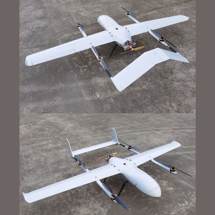 ViewPro F380 VTOL drone is a high-load, long-haul, vertical take-off and landing uav, adopting 4-axis vertical take-off and landing and tail-push structure. With a wingspan of 3.8 metres, it can be fitted with more efficient motors and propellers, and has a larger battery storage cell. This can carry loads of up to 15kg, achieving a three-hour flight time, and having a wider range of applications.