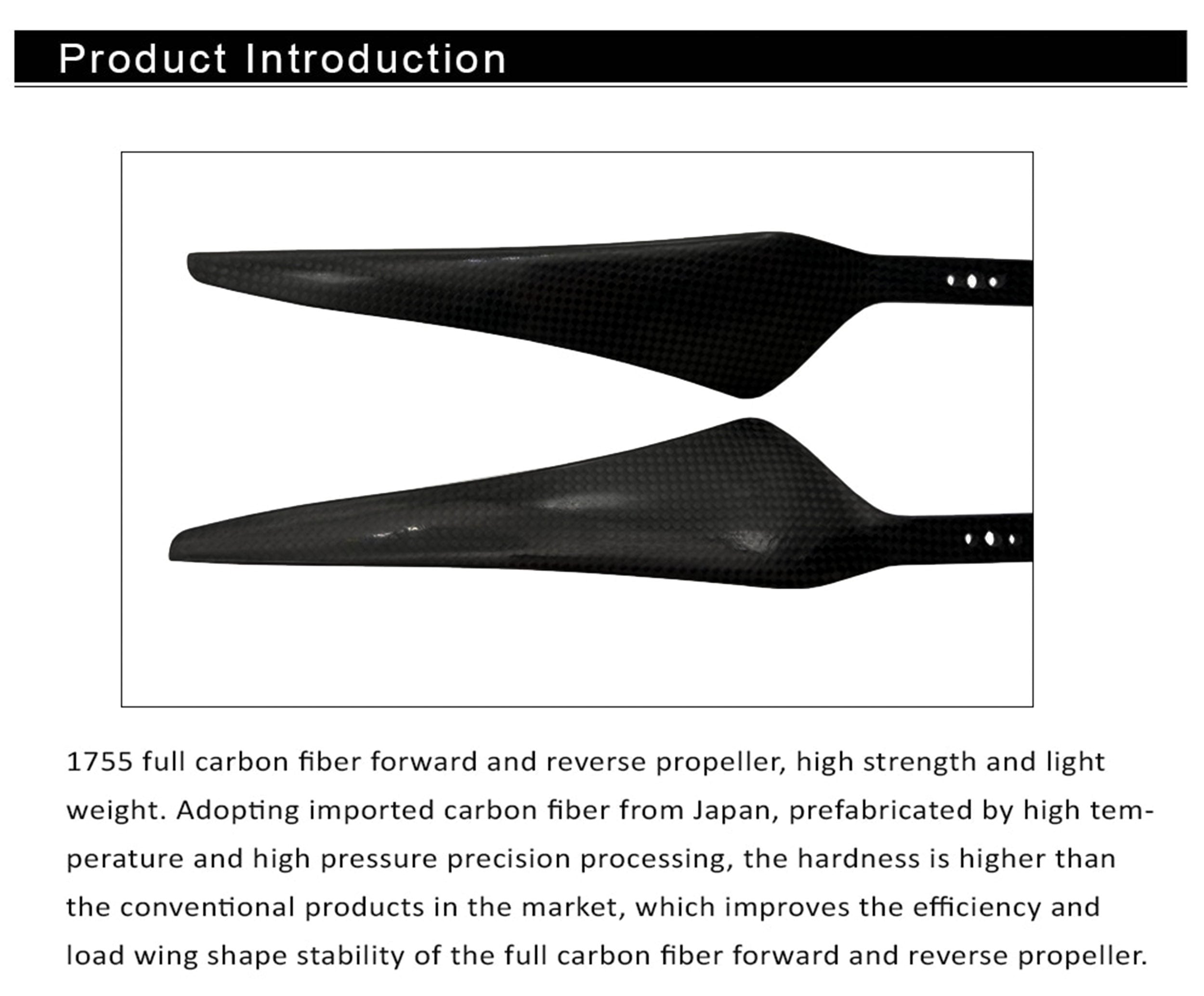 Aerial Survey UAV Forward and Reverse Propeller 1755 Carbon Fiber Propeller Fixed Wing 17*55