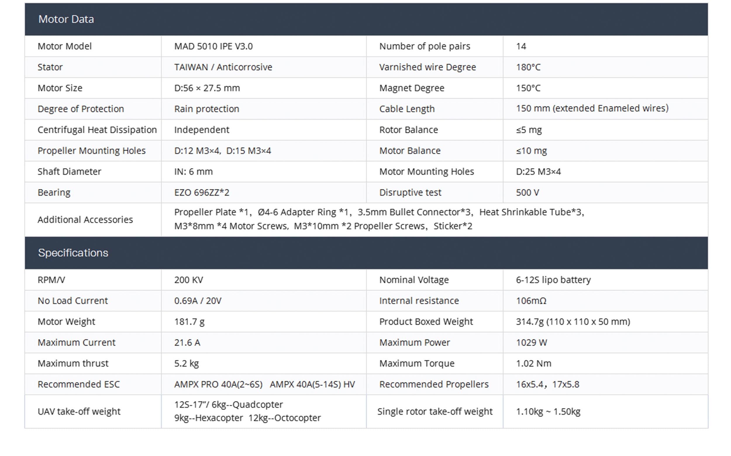 MAD 5010 IPE V3.0 Brushless Motor For The Long-Range Inspection Drone Mapping Drone Surveying Drone Quadcopter Hexcopter Mulitirotor