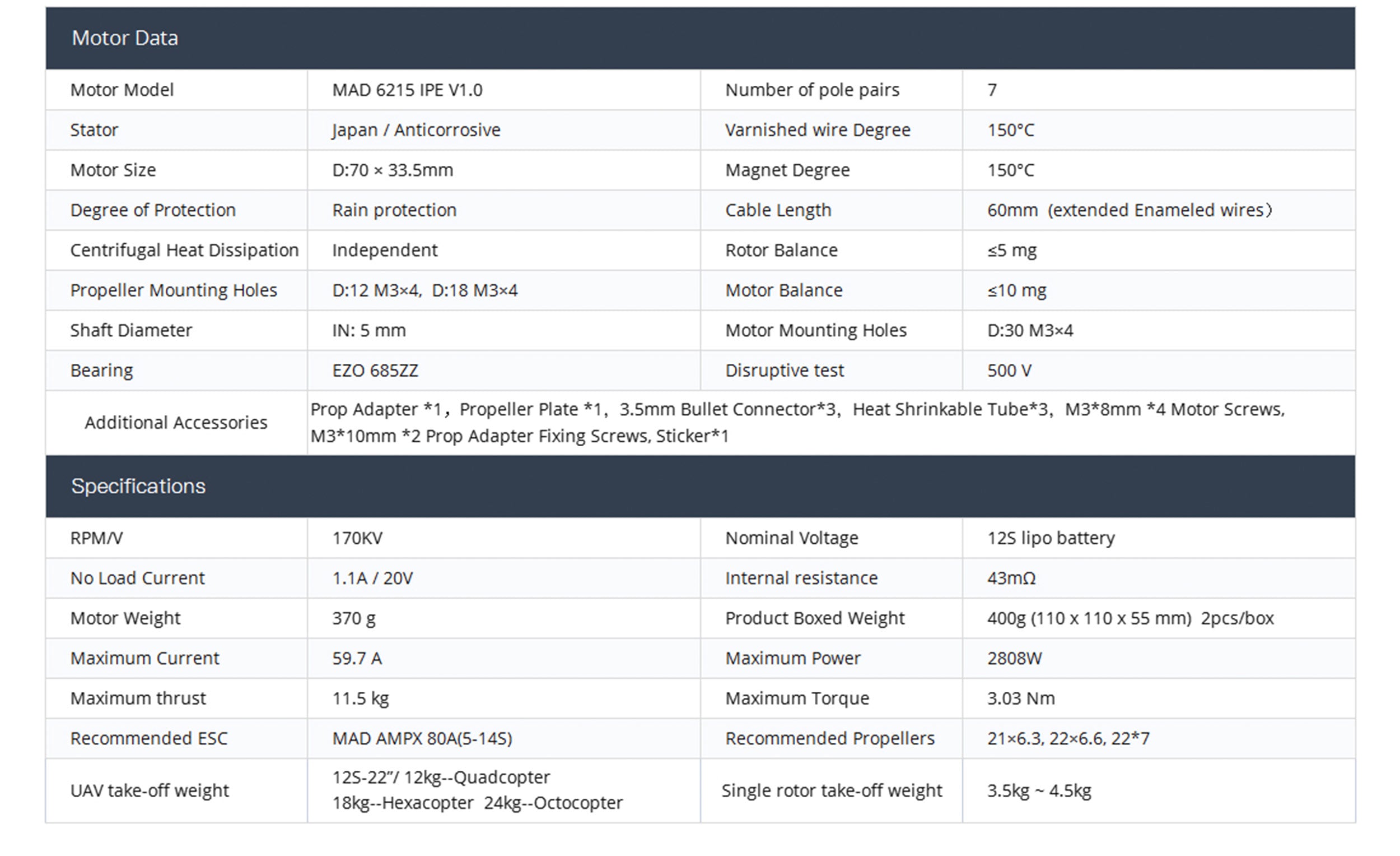 MAD 6215 IPE Brushless Motor For The Brushless Motor For The Heavey Hexacopter Octocopter Firefighting Drone , Tethered Drone, Agriculture Drone, Farming Drone
