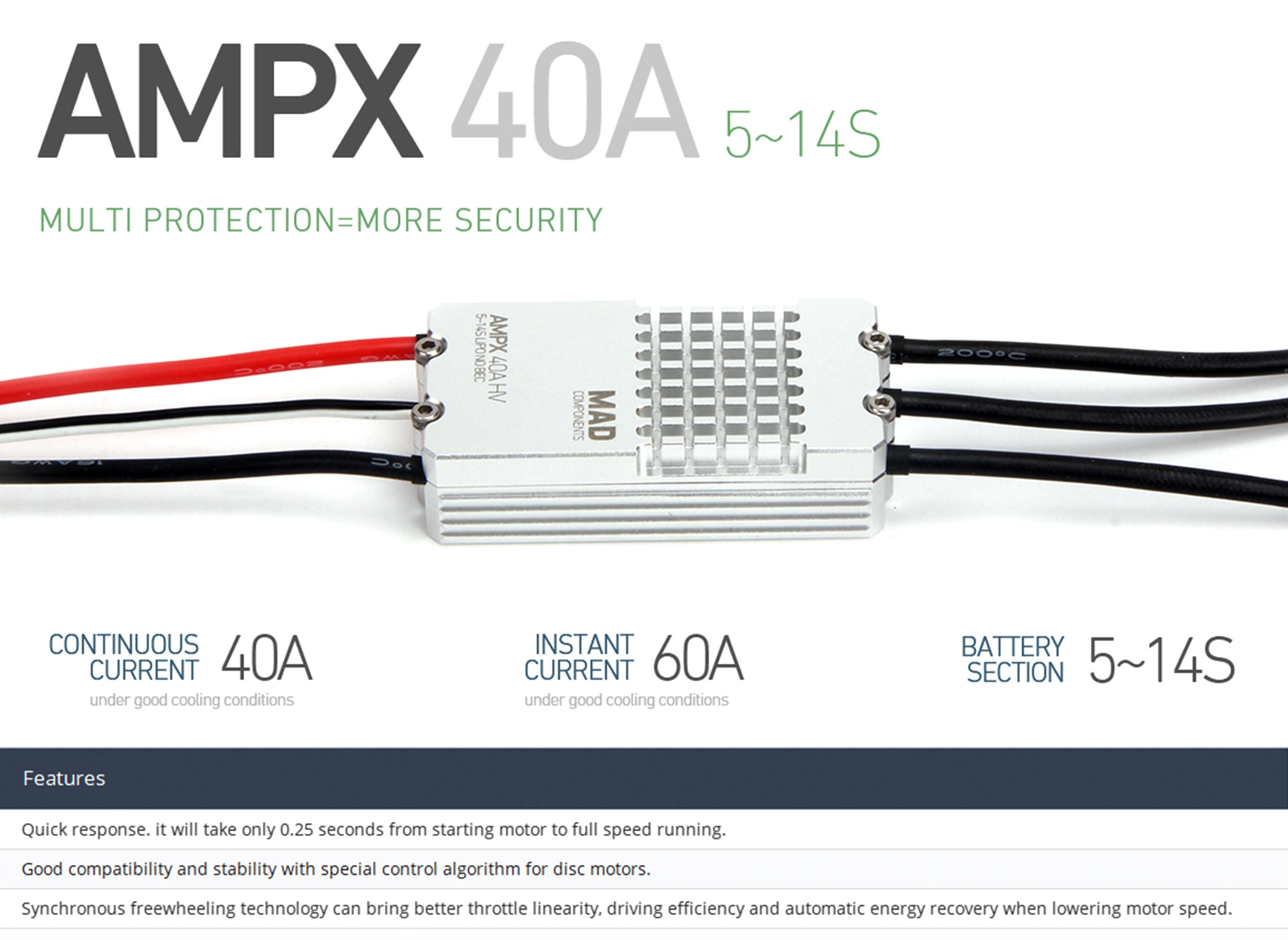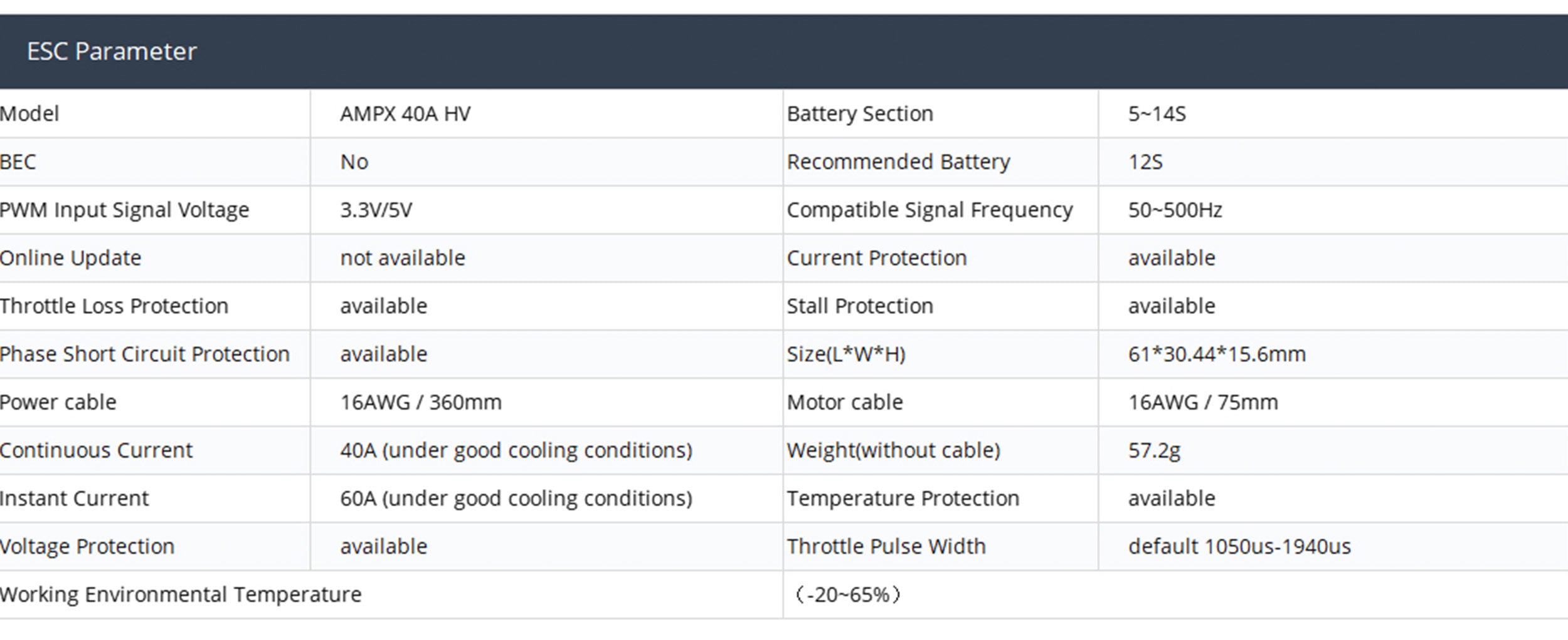 AMPX 40A (5-14S) ESC Regulator HV Waterproof High Voltage For Long-Range Fright Time Professional Drone VTOL