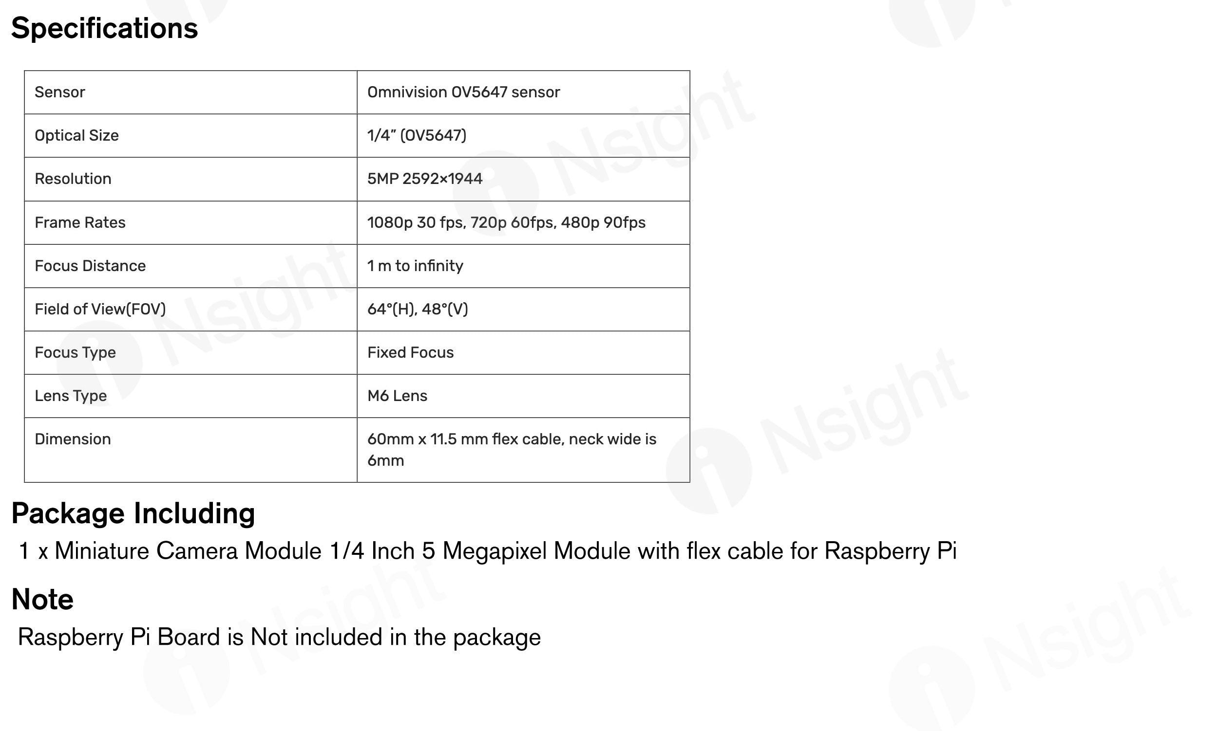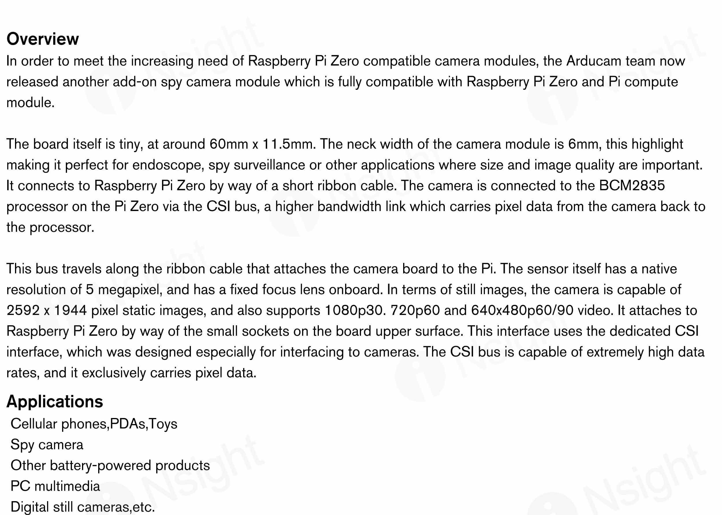 Arducam Spy Raspberry Pi Zero Camera Module, 1/4 Inch 5MP OV5647 Mini IR camera with Flex Cable for pi zero
