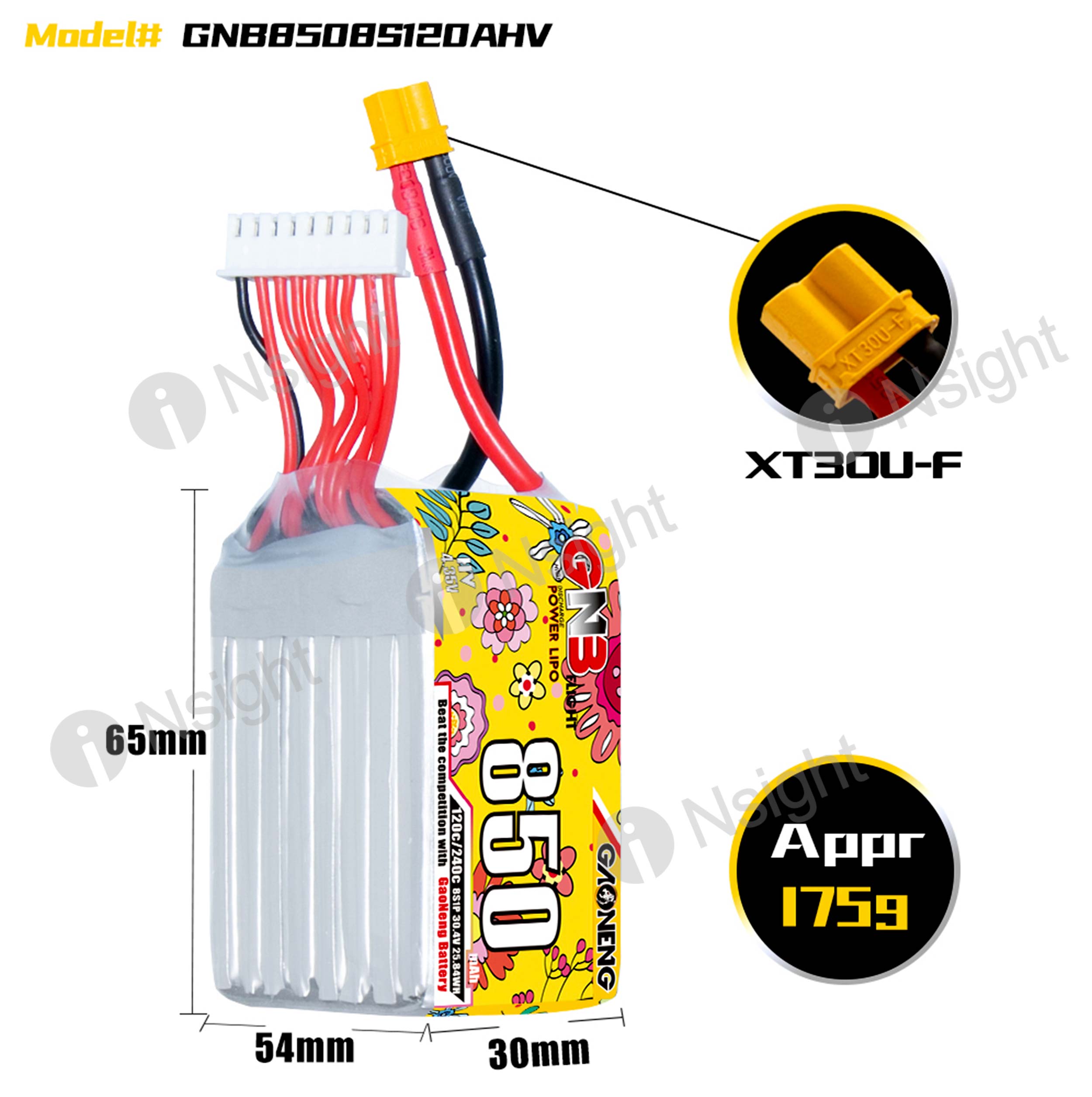 GAONENG GNB LiHV 8S 30.4V 850mAh 120C XT30 Connector LiPo Battery