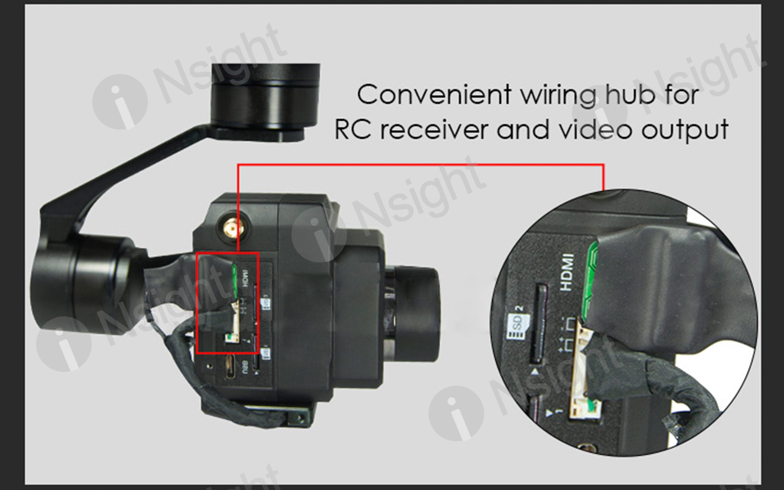 Sky Eye-Duo Pro gimbal is fully compatible with popular UAV products like DJI S1000 and Matrcie 600 multirotor platforms, DJI Lightbridge series video transmitters, Amimon Connex Full HD video link. All this together allows easy integration and operation of the gimbal with DJI and DIY solutions.
